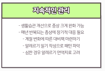 - 증상이 심하면 이비인후과·알레르기 내과 방문