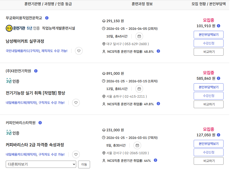 - 훈련분야: IT / 사무 / 디자인 등