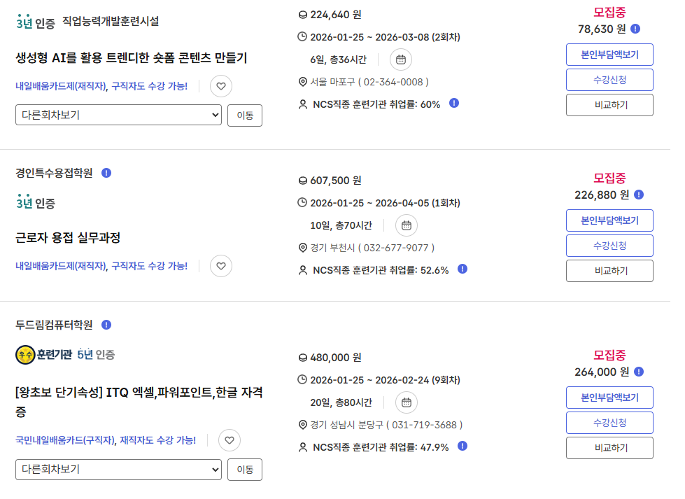 - 해당 과정이 국민내일배움카드 지원 과정인지