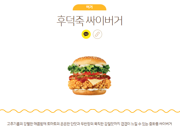 - 메뉴 구성 : 버거 2종 + 치킨 1종