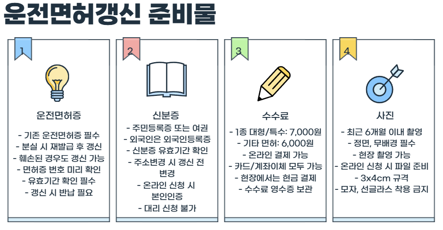 운전면허갱신 준비물 운전면허증, 신분증, 수수료, 사진