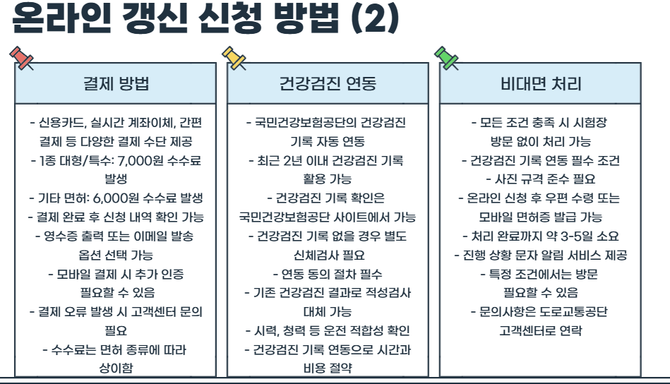 📌 온라인 신청 시 운전면허시험장 방문 없이도 갱신 가능해 시간 절약에 매우 유리합니다.