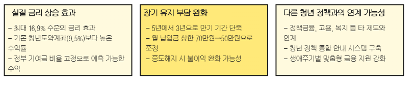 높은 금리 혜택과 정부 지원이 결합된 상품으로, 기존 적금과 비교해 실질 수익이 크다는 점이 장점인데요.