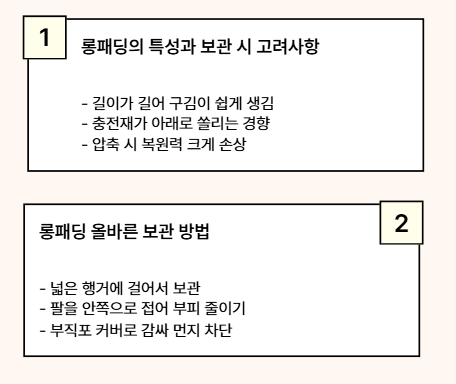 특히 롱패딩은 절대 압축 보관하지 않는 것이 좋습니다.
