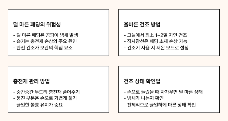 패딩 보관법 실패의 90%는 건조 부족에서 시작됩니다.