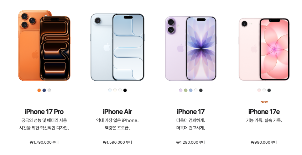 - 전작 16e 대비 소프트 핑크 추가 → 아이폰 SE 로즈골드 느낌
